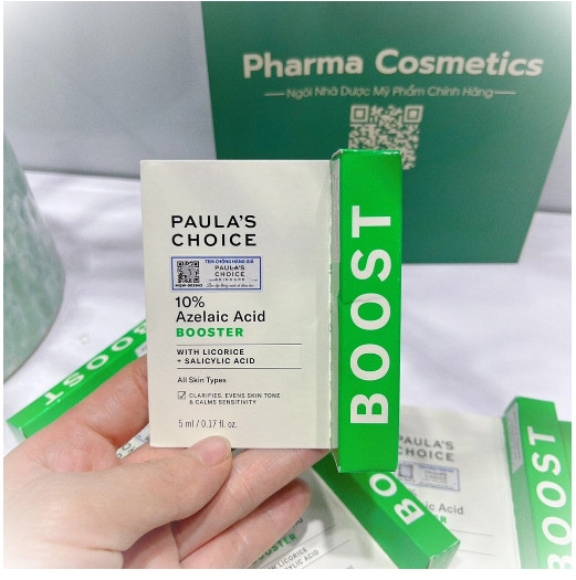 - Paula's Choice 10% Azelaic Acid Booster là dưỡng chất tăng cường (Booster) với công thức độc đáo chứa Azelaic Acid nồng độ cao, kết hợp với các thành phần mạnh mẽ khác, giúp làm giảm mụn, làm sáng và cải thiện làn da không đều màu, đặc trị các đốm nâu trên da, làm dịu làn da kích ứng, mang lại làn da mịn màng và rạng rỡ, trẻ trung hơn.